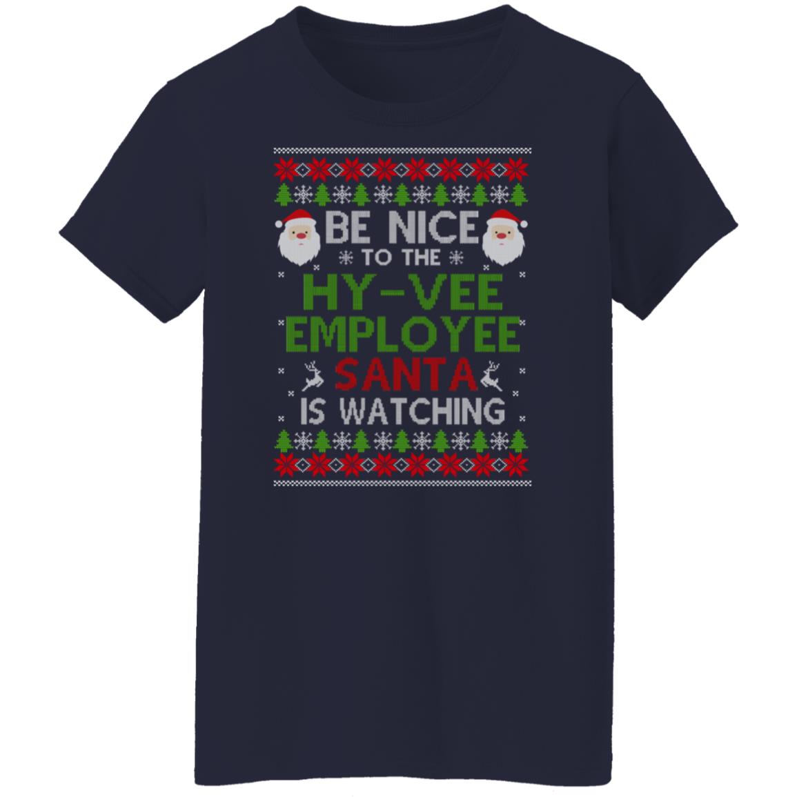 Be Nice To The Hy-Vee Employee Santa Is Watching Christmas Shirt Meaning