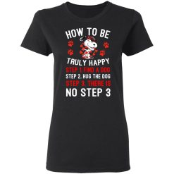Look at detailed information about the How To Be Snoopy Truly Happy Step 1 Find A Dog Step 2 Hug The Dog Step 3 There Is No Step 3 Shirt: