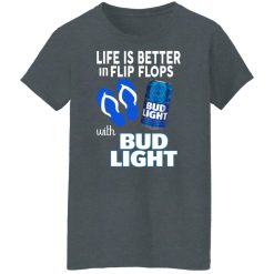 Have a look at the detailed information about the Life Is Better In Flip Flops With Bud Light Shirt below!