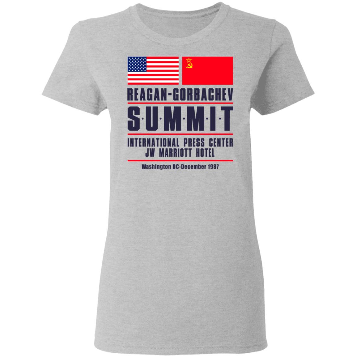 Have a look at the detailed information about the Reagan-Gorbachev Summit International Press Center Jw Marriot Hotel Shirt below!
